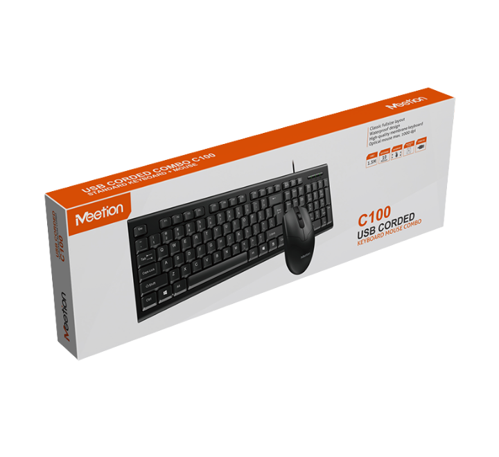 The Meetion MT-C100 Wired Mouse & Keyboard Combo is a reliable and budget-friendly USB keyboard and mouse set designed for smooth everyday performance. Featuring a full-size ergonomic keyboard with quiet, responsive keys and a high-precision optical wired mouse, this combo ensures comfortable typing and accurate cursor control for home, office, and business use.