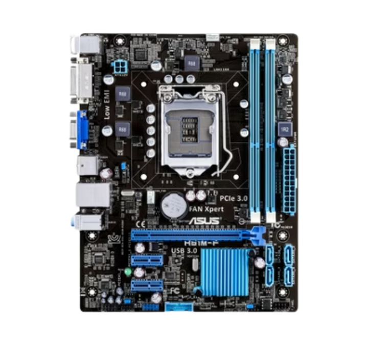 A tested ASUS H61 motherboard (Used) compatible with Intel 2nd and 3rd generation processors. Supports 2 DDR3 RAM modules, multiple storage drives, and standard PCIe expansion cards. Ideal for budget desktops, office PCs, or system upgrades.